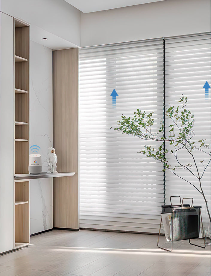 Sheer shade is designed with horizontal vanes between two fabric sheers. Yooksmart affords you the pleasure of enjoying natural light and the luxury of privacy with its soft, noble design and 180° adjustable vans. Realize your ideas and requirements, we design and program, offering you the best solution for your commercial or household project at the best price.
